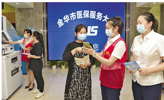 金华医保助办员指导帮助群众用手机办理医保业务