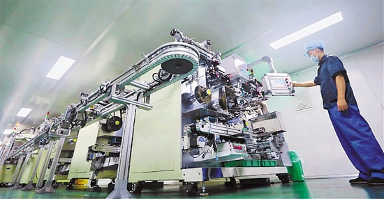宇恒电池公司内,工人调试自动生产线。拍友 章建辉 摄