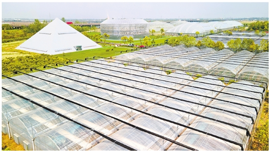 俯瞰雾耕“植物工厂”,“土楼”“金字塔”等造型大棚科技感十足。
