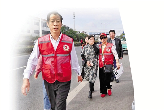 孙根才(左一)和志愿者陪同寻亲者回家。 受访者供图