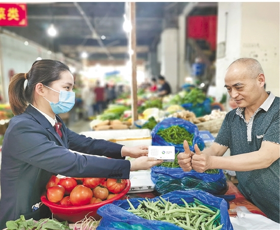 杭州联合银行为商户布放“一码通” 郑丽亚 摄