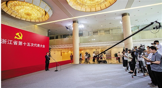 6月21日下午,省第十五次党代会第二场“党代表通道”集中采访活动在省人民大会堂国际会议厅大厅开启。 本报记者 李震宇 董旭明 王建龙 摄