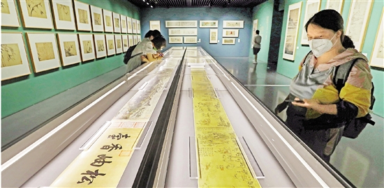 6月25日,在嘉兴美术馆,观众正在欣赏盛世修典——“中国历代绘画大系”特展中的“天籁阁旧藏”单元。天籁阁是明代嘉兴大收藏家项元汴庋藏书画图籍之所。本次展览在“大系”收录的中国古代绘画精品中,选出1022件集中亮相,其中356件作品与项元汴有关,如《女史箴图》《五牛图》等。 本报记者 林云龙 王建龙 王志杰 摄 |