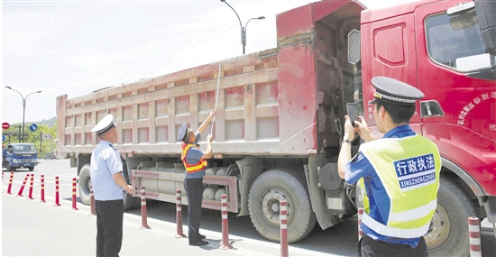 富阳区综合执法、交通运输、公安交警等部门,对工程运输车辆开展“综合查一次”工作