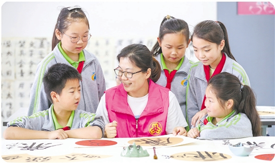 廉洁文化宣传队伍走进校园写家训家规,讲家风故事。 王树成 摄