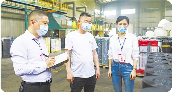 南浔区双林镇纪委相关负责人到盛利染整厂开展走访调研。 祝宏涛 摄