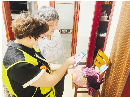 社区网格员利用“邻礼通”入户开展民情档案登记工作