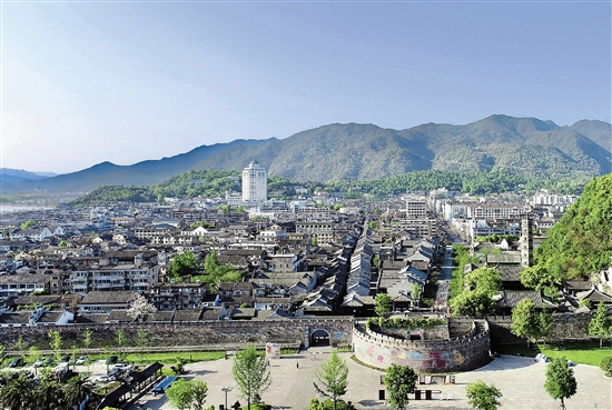 图为台州府城墙围绕着的临海古城。