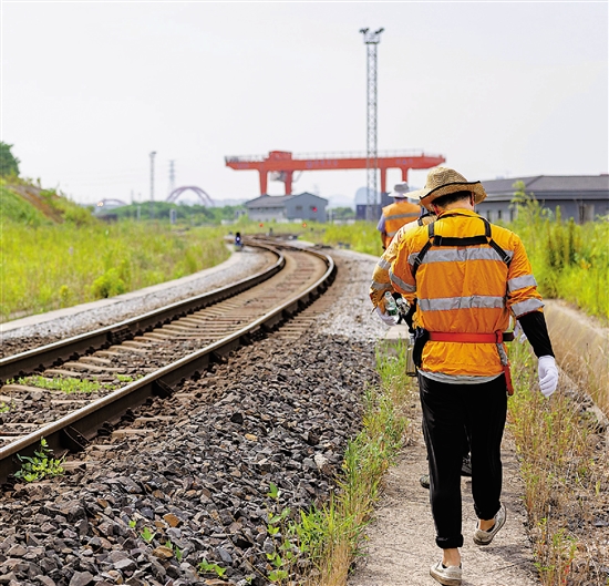 铁路湖州西站的调车员们全副武装顶着骄阳作业。