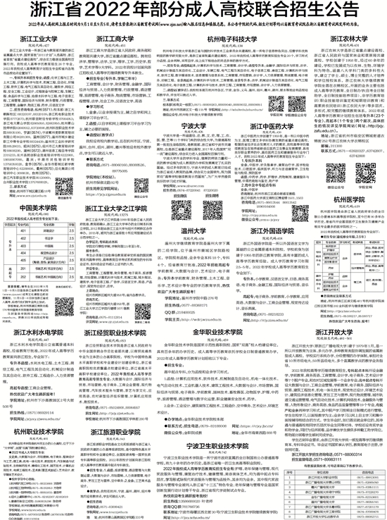重要提醒:请考生在2022年9月1日—9月5日登录浙江省教育考试网(www.zjzs.net)成考文化课报名和志愿填报。11月5日—6日参加浙江省成人高考,后进行我们院专业网上加试。