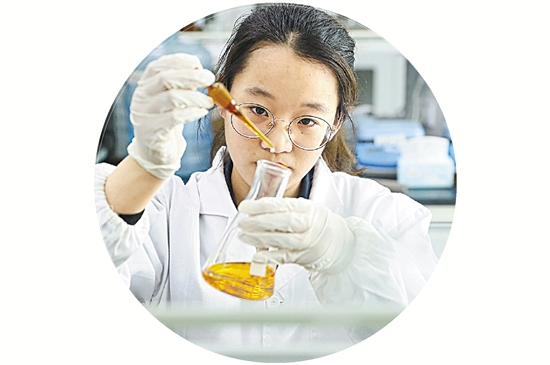 “良海粮油”员工检测油品杂质 陈炳群 摄