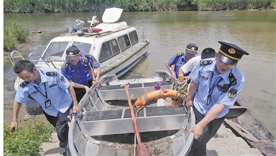 瓶窑苕溪禁渔“一支队伍管执法”特色场景。