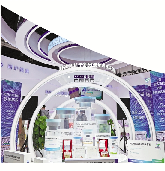 人们在国家会议中心国药集团展台参观。 新华社发