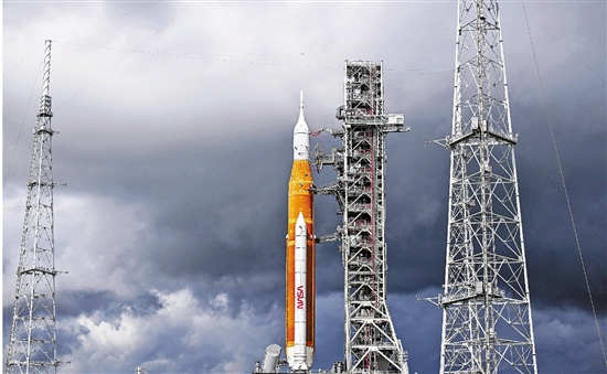 这是9月2日在美国肯尼迪航天中心拍摄的新一代登月火箭“太空发射系统”。 新华社发