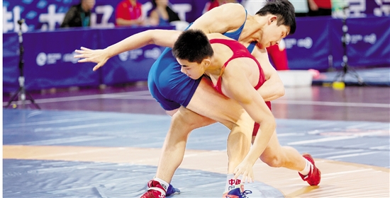 | 9月4日,浙江省第十七届运动会国际式摔跤比赛在兰溪市体育中心开赛。本次比赛吸引了省内各地区10支代表队参赛,234名运动员在为期3天的比赛中争夺30枚金牌。 本报记者 薛文春 共享联盟兰溪站 杨一之 拍友 吴强 摄 |