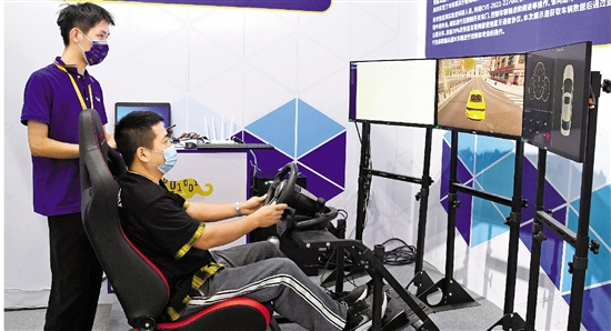 9月4日,2022年国家网络安全宣传周网络安全博览会在安徽省合肥市举行。图为一家参展企业代表在演示使用车载网络安全科技产品。 新华社记者 刘军喜 摄