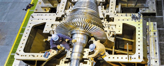 杭汽轮大型低压汽轮机装配现场。 企业供图