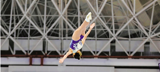 9月17日,“韵味杭州”2022年全国体操系列赛最后一项赛事——全国蹦床冠军赛在杭州黄龙体育中心举行,共有15支队伍、120名运动员参赛,赛期为两天。 本报记者 姚颖康 摄