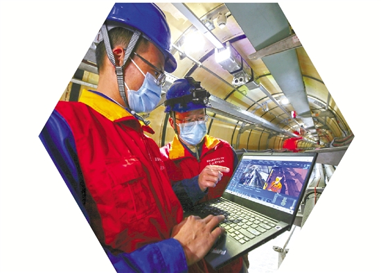 国网宁波供电公司电缆运检人员在220千伏澄浪隧道检查电缆运行状况。 王幕宾 摄