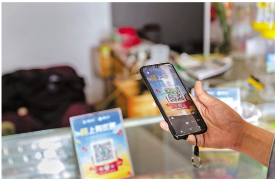 金华兰溪马涧镇农户通过农行掌银扫二维码享受支付优惠。