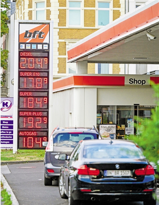 在德国波恩一加油站拍摄的油价显示屏。 新华社发