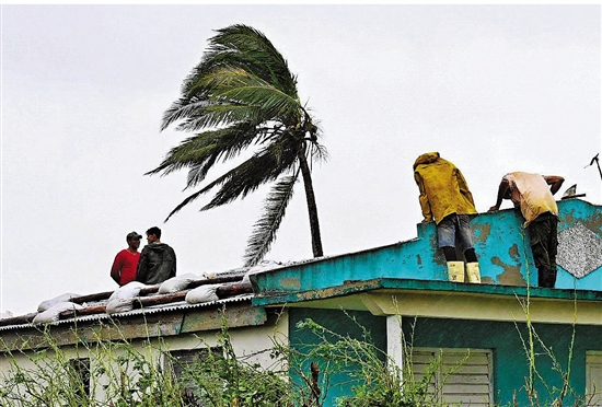 9月27日,在古巴圣胡安-马丁内斯,民众维修房屋。古巴媒体报道说,“伊恩”27日升级为3级飓风登陆古巴西部,带来强风和强降雨并引发洪水等灾害。 新华社发