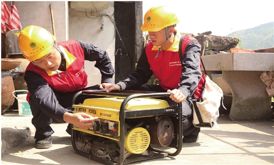 黄岩供电工作人员为群众检查用电设备 (国网黄岩区供电公司供图)