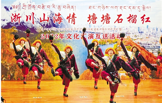 近日,由杭州市钱塘区和四川省甘孜州理塘县联合举办的2022塘塘文化年文化汇演互送活动在杭举行。理塘仙鹤艺术团带来的康巴风情藏族歌舞,为现场观众送上一场文化盛宴。 拍友 郑嘉玲 周丹 摄