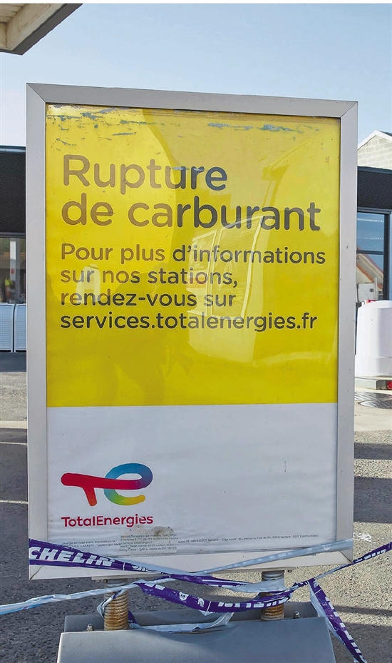 左图:法国北部一处因燃油供应中断而暂时关闭的道达尔集团旗下的加油站。