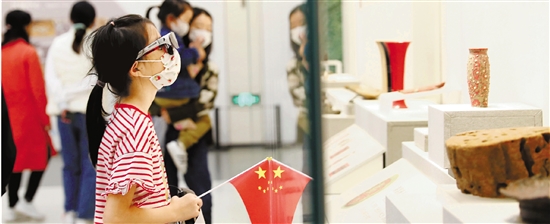 10月7日,国庆假期最后一天,不少杭州市民带着小朋友错峰出游,来到良渚博物院观文物、听讲解,过一个有“文化范儿”的国庆节。