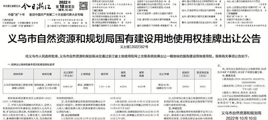 义乌市自然资源和规划局国有建设用地使用权挂牌出让公告