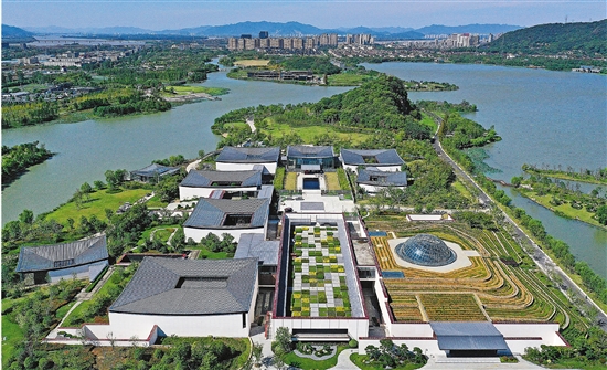10月10日,在杭州萧山湘湖景区,无人机鸟瞰世界旅游博览馆。目前,该馆建设基本完工,正在加紧内部装修和展陈。世界旅游博览馆总建筑面积近4万平方米,是以世界旅游为主题,集文化展示传播、休闲旅游于一体的综合性博物馆,预计今年底可开馆迎客。 本报记者 林云龙 拍友 蔡卡特 摄 |