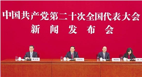 10月15日,中国共产党第二十次全国代表大会新闻发言人孙业礼在北京人民大会堂举行新闻发布会。 新华社记者 才扬 摄