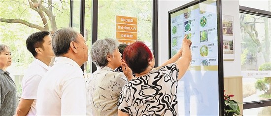 居民们在翠苑一区老年食堂体验智慧菜单。 拍友 冯晨晨 摄