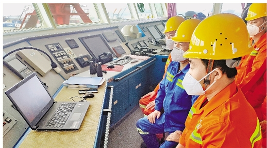 16日,舟山市普陀区虾峙镇远洋渔船船员收看直播。 本报记者 黄宁璐 拍友 翁钱军 摄