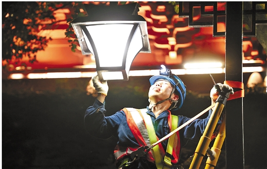 路灯巡检消缺工作保障景区夜间照明 邱晗飞 摄