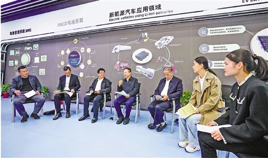 天能集团锂电智能化工厂内,天能集团工作人员等连线赵红霞代表,共话转型发展。 共享联盟·长兴 吴拯 摄