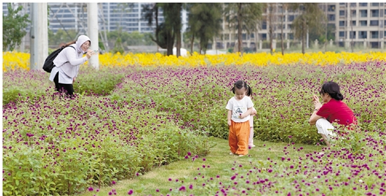 荒地变花海,引来游客竞相打卡。 夏思斯 摄