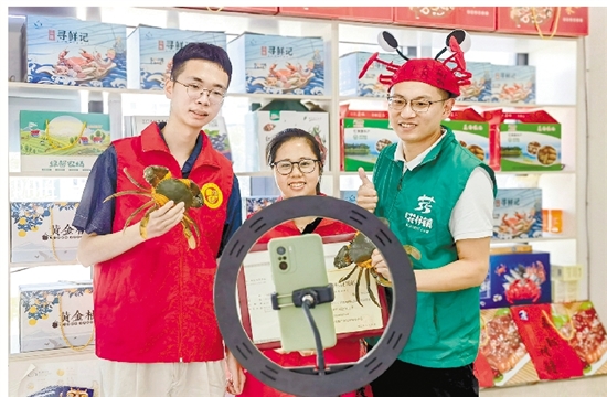 三门县花桥镇红旗电商共富工坊的青年党员自发助力农户线上销售养殖水产