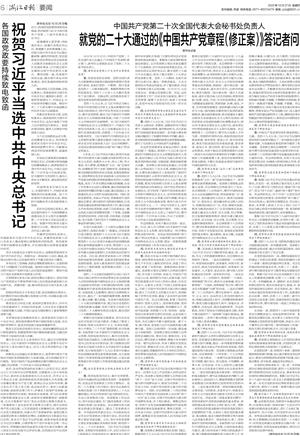 就党的二十大通过的《中国共产党章程(修正案)》答记者问