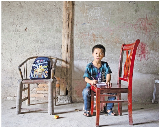 2012年9月23日,杨星瑞在青田万阜乡家里做作业。
