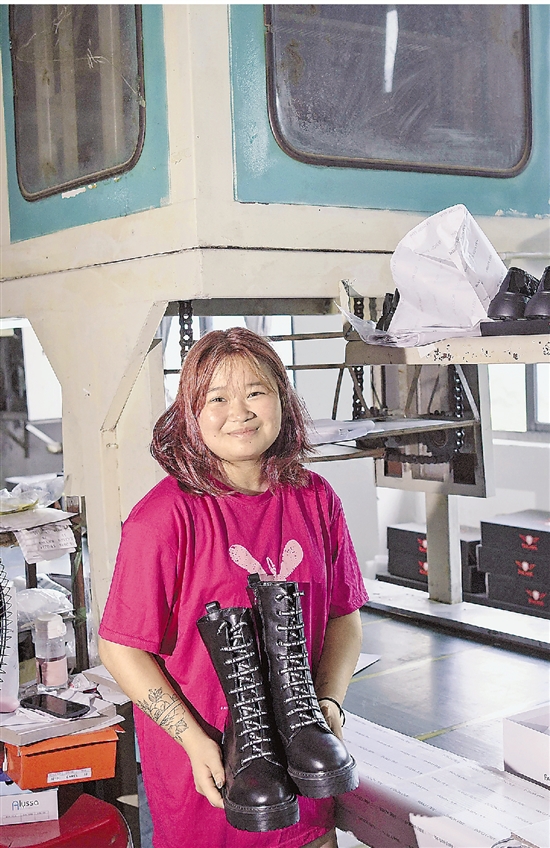 2022年7月13日,周妹钗在温州永嘉一家皮鞋厂上班。