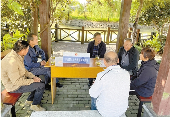 | 近年来,海盐县于城镇人大立足探索建立“坐诊+出诊+会诊”的全天候选民接访机制,切实发挥代表深入群众作用,助力乡村特色产业发展,推动村民增收致富。图为于城镇人大代表在代表移动联络站接待选民。 蒋思媛 摄 |