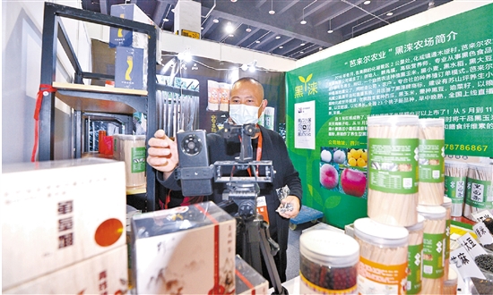 四川省巴州区参展商正在直播 吴峰宇 摄