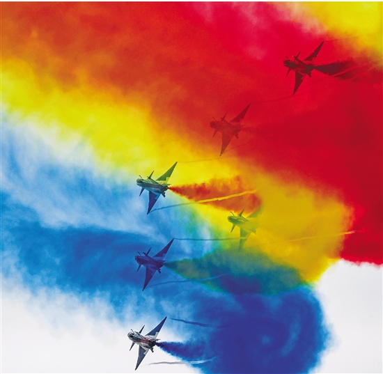 ◀ 图为中国空军八一飞行表演队在第十四届中国航展上进行飞行表演。 新华社发(谭巳成 摄)