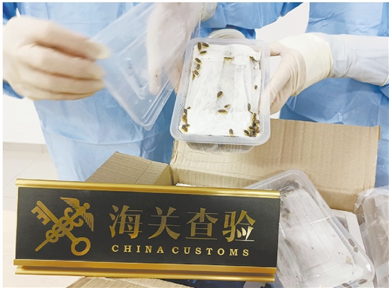 宁波海关在快件渠道截获柠檬蓝鼠妇 吴彪 摄