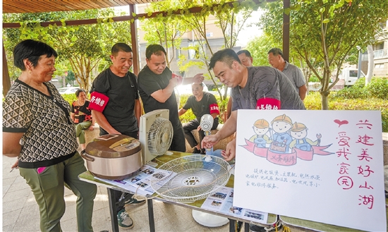 太湖图影山湖花园社区志愿者正在开展“我为群众办实事”义务维修小家电服务。