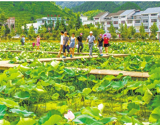 游客在潭头村赏荷 汪贵鑫 摄