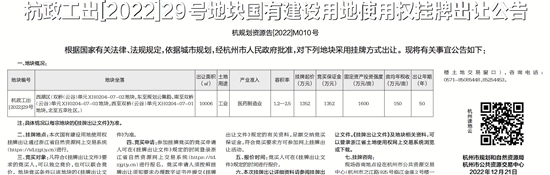 杭政工出[2022]29号地块国有建设用地使用权挂牌出让公告