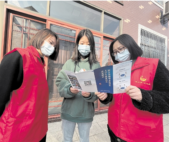 | 送创业就业政策 近日,德清县洛舍镇工作人员为雁塘村未就业大学生送上创业就业政策。为帮助当地大学生解决就业问题,该镇多次与县委人才办、县人社局沟通,掌握引才创业政策,鼓励大学生自主创业。目前,洛舍镇已通过大学生创新创业团队政策扶持大学生创业项目7个。 潘 昊 摄 |